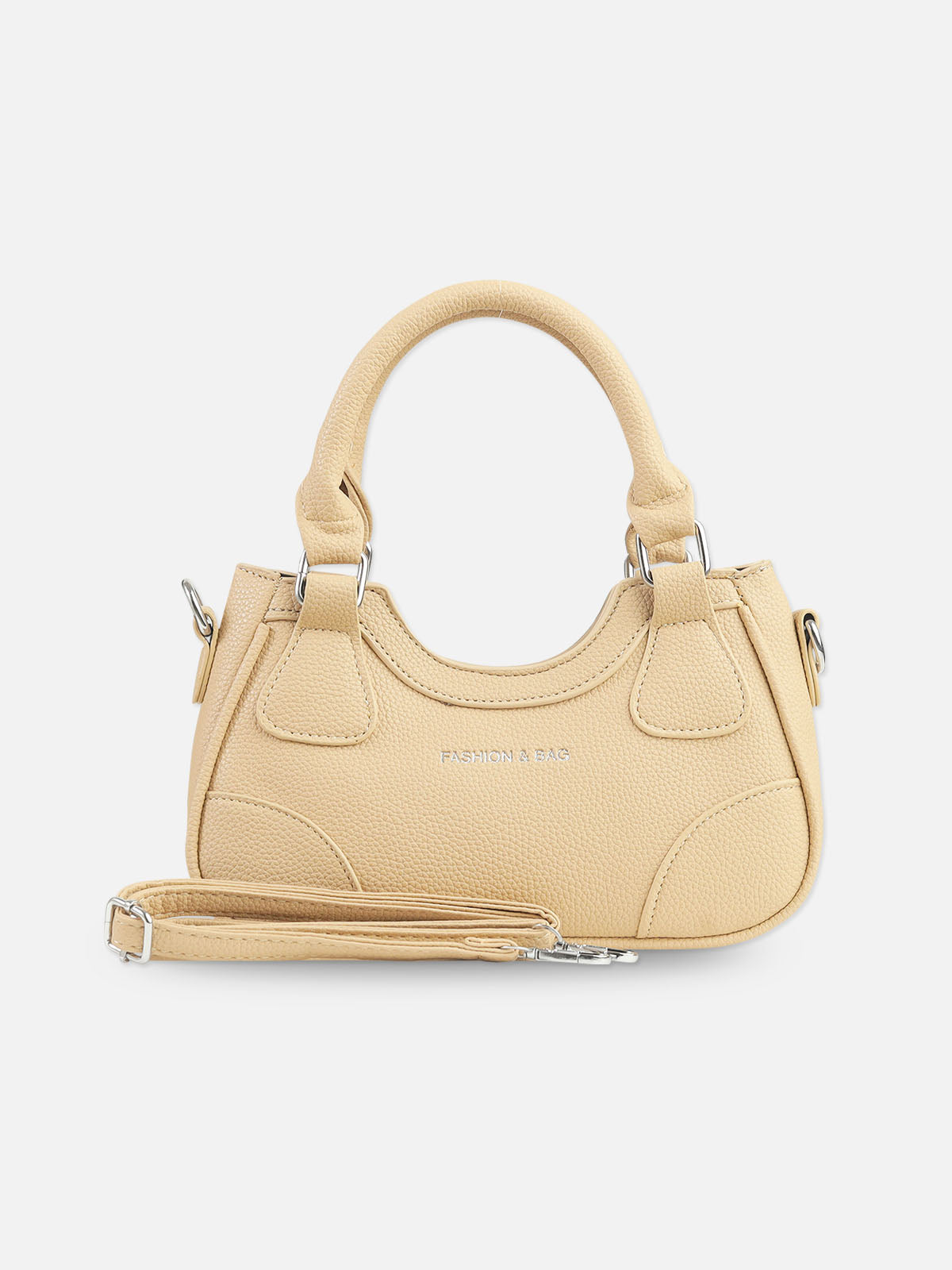 Accented with stylish silver-toned hardware and subtle stitched details on the sides, this bag combines functionality with fashion. The "FASHION & BAG" text on the front adds a playful, contemporary touch. It's the ideal size for carrying all your daily essentials in style.