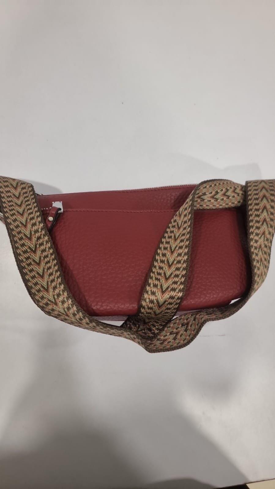 Chic Red Textured Shoulder Bag with Adjustable Strap