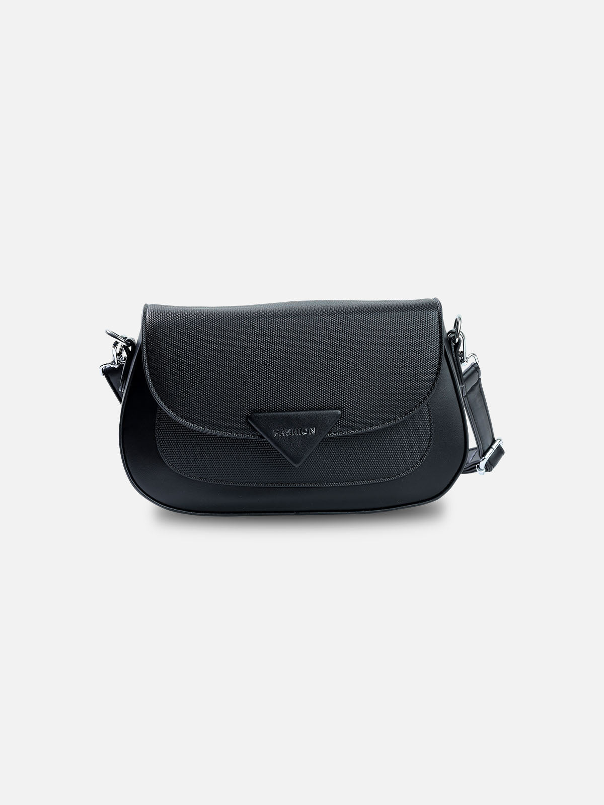 Elevate your everyday look with the Classic Black Flap Shoulder Bag, a sleek and versatile piece designed for modern minimalism. Featuring a textured fabric flap and smooth faux leather body, this compact bag is finished with a tonal triangle tab embossed with FASHION for a subtle statement.