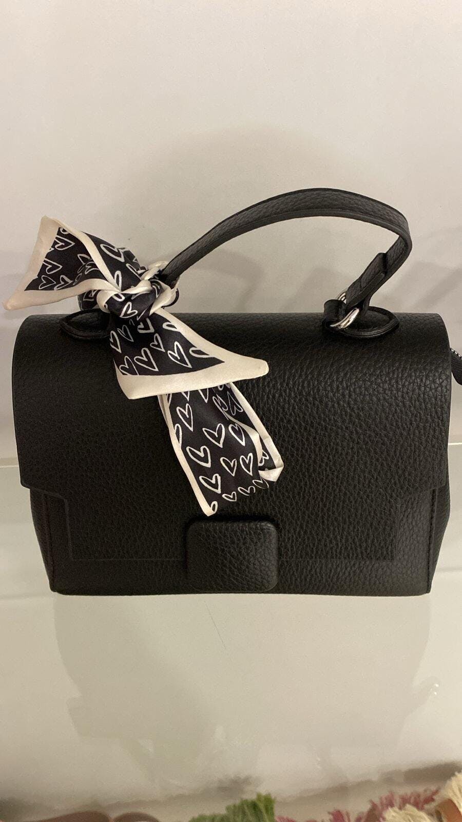 Elevate your everyday style with this elegant Black shoulder bag, designed for both functionality and flair. Crafted from premium faux leather, this bag features a sleek, structured silhouette with a front flap closure for secure storage. A charming printed scarf tied to the strap adds a chic, feminine touch—perfect for enhancing any outfit. With its adjustable strap, you can wear it as a shoulder or crossbody bag to suit your look. Ideal for casual outings, brunch dates, or daily errands.