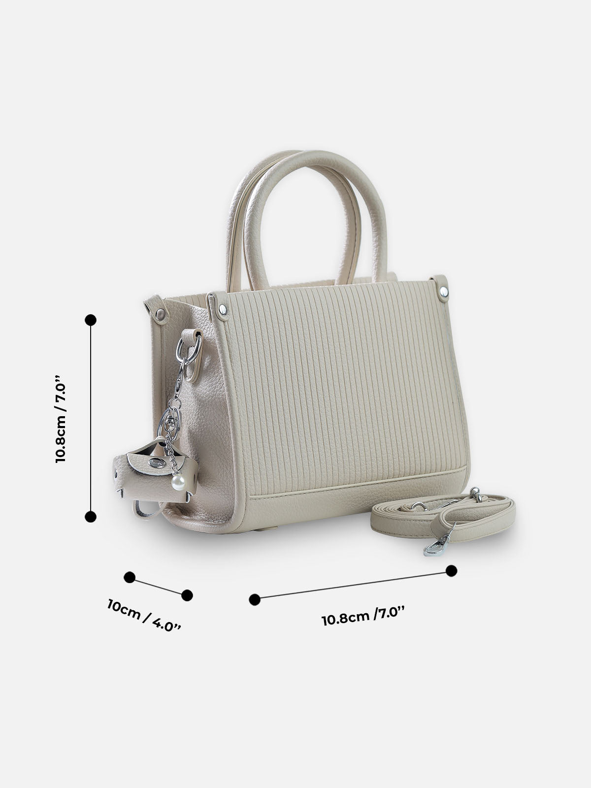 Luxe Ivory – Premium Textured Leather Handbag with Pearl Charm